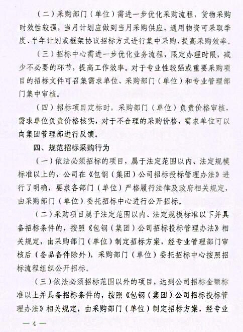 關(guān)于印發(fā)《包鋼(集團(tuán))公司關(guān)于進(jìn)一步強(qiáng)化采購招投標(biāo)管理實施辦法(試行)》的通知